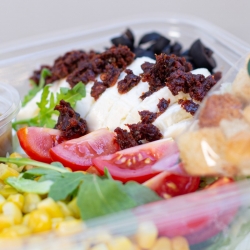 mozzarella / čerstvá zelenina / sušená rajčata / olivy / medové balzamiko