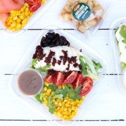 čerstvá zelenina / kuře / vejce / grilovaná slanina
