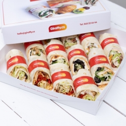 Tento box nabízí 12 polovin wrapů v osvědčených kombinacích masa, sýra a čerstvé zeleniny.