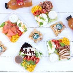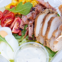 čerstvá zelenina / kuře / vejce / grilovaná slanina